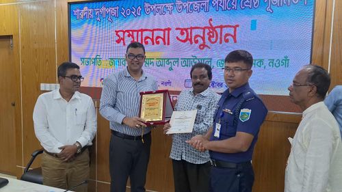 নওগাঁয় সন্মাননা পেল শ্রেষ্ঠ দূর্গা মন্ডপ