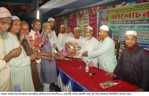 বগুড়া পৌরসভার ১৩নং ওয়ার্ড আমীর মতিয়ার রহমানের সভাপতিত্বে প্রধান অতিথি ছিলেন বগুড়া-৭ (শাজাহানপুর-গাবতলী) আসনে জামায়াতে ইসলামী মনোনীত এমপি প্রার্থী ও বাংলাদেশ শ্রমিক কল্যাণ ফেডারেশনের কেন্দ্রীয় সহ-সভাপতি গোলাম রব্বানী। সাবেক ছাত্রনেতা শাহিন খানের সঞ্চালনায় অনুষ্ঠানে বিশেষ অতিথি হিসেবে বক্তব্য রাখেন জেলা জামায়াতের আমীর অধ্যক্ষ মাওলানা আব্দুল হক সরকার, জেলা নায়েবে আমীর অধ্যাপক মাওলানা আব্দুল হাকিম সরকার, শাজাহানপুর উপজেলা আমীর মাওলানা আব্দুর রহমান, উপজেলা সেক্রেটারি মাওলানা শহিদুল ইসলাম, শহর জামায়াতের সহকারী সেক্রেটারি আল আমিন, উপজেলা সহকারী সেক্রেটারি তারেকুল ইসলাম তারেক, শাজাহানপুর উপজেলা ইটভাটা মালিক সমিতির সভাপতি আলহাজ্ব রফিকুল ইসলাম, জামায়াত নেতা সাহেব আলী, আবু সুফিয়ান পলাশ, রেজাউল করিম, রেজওয়ান, আব্দুর রাজ্জাক, আতাউর রহমান, রবিউল ইসলাম ও জরজিস হোসেনসহ বিভিন্ন পর্যায়ের নেতৃবৃন্দ। বক্তারা বলেন, “জামায়াতে ইসলামীই দেশের স্বাধীনতা, ইসলাম ও ন্যায়ভিত্তিক সমাজ প্রতিষ্ঠার প্রকৃত শক্তি। দলমত নির্বিশেষে ইসলামপ্রেমী সবাইকে এই আন্দোলনে শরিক হতে হবে। জামায়াতে যোগদানকারী ওলামা দলের সহ-সভাপতি মাওলানা আব্দুর রহমান বলেন, আদর্শ সমাজ গঠনে জামায়াতে ইসলামী কাজ করে যাচ্ছে। আমিও তার কর্মী হলাম।
