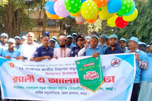 ‘মানসম্মত হেলমেট ও নিরাপদ গতি, কমাবে জীবন ও সম্পদের ক্ষতি’—এই প্রতিপাদ্যে বগুড়ায় উদযাপিত হয়েছে জাতীয় নিরাপদ সড়ক দিবস। দিবসটি উপলক্ষে বুধবার সকাল সাড়ে ৯টার দিকে বিআরটিএ বগুড়া সার্কেলের আয়োজনে র্যালি ও আলোচনা সভা অনুষ্ঠিত হয়। জেলা প্রশাসক চত্বরের বটতলা থেকে র্যালিটি শুরু হয়ে শহরের প্রধান সড়ক প্রদক্ষিণ করে। পরে জেলা প্রশাসকের সভাকক্ষে দিবসটিকে ঘিরে আলোচনা সভা অনুষ্ঠিত হয়।