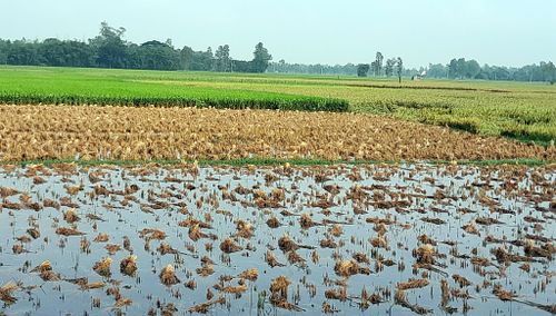 উপজেলার হাটলাল গ্রামের কৃষক মিনহাজুর রহমান হাবিব বলেন, এখন ধান কাটা মাড়াইয়ের সময়। পাকা ধানের জমিতে পানি জমে শীষ ভিজে যাচ্ছে, ফলন কমে যেতে পারে। চার দিনের বৃষ্টিতে পাকা ধান শুয়ে পরে ক্ষতি শুরু হয়েছে। এর ওপর আরো বৃষ্টি হলে ক্ষতির পরিমাণ বেশি হতে থাকবে।