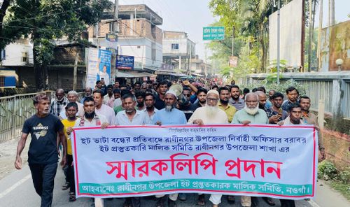 রাণীনগরে ইটভাটা বন্ধের প্রতিবাদে মালিক-শ্রমিকদের বিক্ষোভ ও স্মারকলিপি প্রদান
