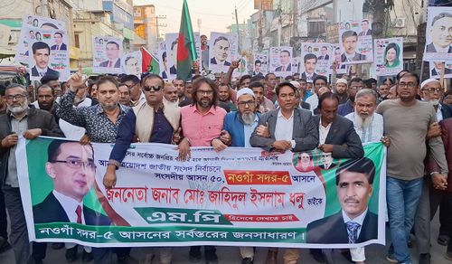 নওগাঁ-৫ আসনে বিএনপির মনোনয়নপ্রত্যাশী ধলুর পক্ষে নেতাকর্মীদের শোডাউন