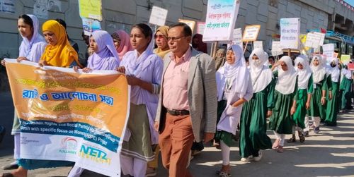 বগুড়ার শিবগঞ্জ উপজেলায় আন্তর্জাতিক নারী নির্যাতন প্রতিরোধ পক্ষ উপলক্ষে র্যালি ও আলোচনা সভা অনুষ্ঠিত হয়েছে।