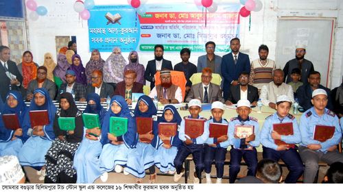 বগুড়ায় টাচস্টোন স্কুল এন্ড কলেজে কোরআন সবক প্রদান অনুষ্ঠিত