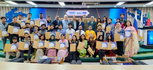 ঢাকায় ডিআইইউতে রুশ ভাষার কোর্স সম্পন্নকারীদের মাঝে সনদপত্র বিতরণ