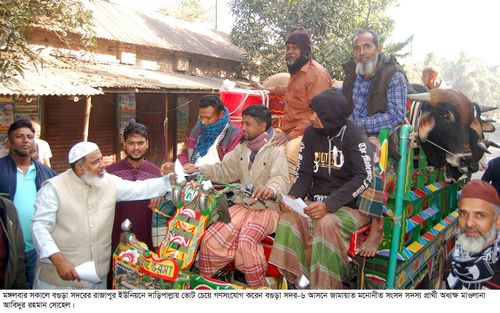 বগুড়ার রাজাপুরে দাড়িপাল্লায় ভোট চেয়ে সোহেলের গণসংযোগ