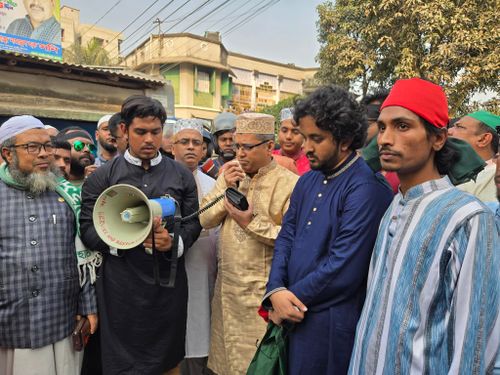 হাদি হত্যার বিচার দাবিতে নওগাঁয় কফিন নিয়ে এসপি বাসভবন ঘেরাও ; ৪৮ ঘন্টার আলটিমেটাম