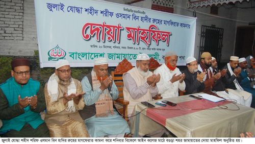 কেন্দ্রীয় কর্মসুচীর অংশ হিসেবে জুলাই যোদ্ধা ইনকিলাব মঞ্চের মুখপাত্র শহীদ শরিফ ওসমান বিন হাদির রুহের মাগফেরাত কামনা করে শনিবার বিকেলে আইন কলেজ মাঠে বগুড়া শহর জামায়াতের দোয়া মাহফিল অনুষ্ঠিত হয়। নায়েবে আমীর অধ্যাপক মাওলানা আব্দুল হালিম বেগের সভাপতিত্বে মাহফিলে প্রধান অতিথি ছিলেন শহর আমীর অধ্যক্ষ মাওলানা আবিদুর রহমান সোহেল। সহকারী সেক্রেটারী এ্যাডভোকেট আল আমিনের পরিচালনায় মাহফিলে আরো বক্তব্য রাখেন শহর সেক্রেটারী অধ্যাপক আ স ম আব্দুল মালেক, অধ্যাপক রফিকুল আলম, আজগর আলী, মাওলানা হেদায়েতুল ইসলাম, অধ্যাপক আব্দুস সালাম তুহিন, মাওলানা আব্দুল হামিদ বেগ, অধ্যক্ষ ইকবাল হোসেন, মিজানুর রহমান, আজাহার আলী প্রমুখ।