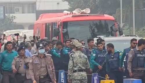 এসময় তারেক রহমান গাড়ির চারপাশে নেতাকর্মীরাও বাসটির চারপাশে নিরাপত্তা বেষ্টনী তৈরি করতে দেখা যায়।