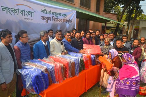 বগুড়ায় লংকাবাংলা ফাউন্ডেশনের কম্বল বিতরণ