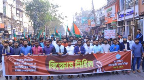 শাকসু নির্বাচন স্থগিতের প্রতিবাদে বগুড়ায় শিবিরের বিক্ষোভ