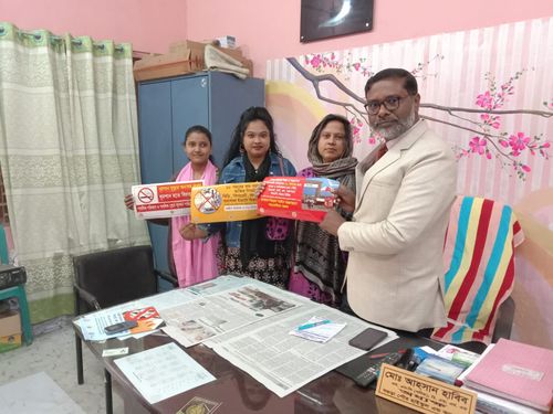 বগুড়ায় তামাকের কুফল সম্পর্কে সচেতনতা বৃদ্ধিতে শিক্ষা প্রতিষ্ঠানে লিফলেট বিতরণ