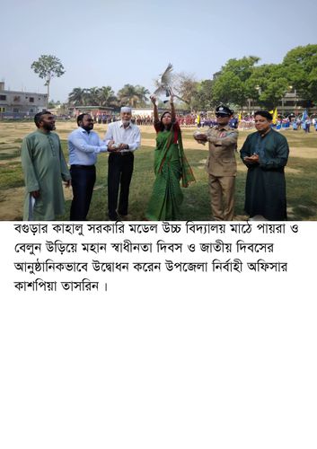 বগুড়ার কাহালু উপজেলা প্রশাসন, বিভিন্ন রাজনৈতিক, সামাজিক, সাংস্কৃতিক সংগঠন ও শিক্ষা প্রতিষ্ঠানের আয়োজনে যথাযোগ্য মর্যদায় মহান স্বাধীনতা ও জাতীয় দিবস উদযাপন করা হয়েছে।