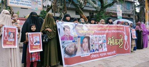 মানববন্ধনে স্বামীর হত্যাকারীদের ফাঁসির দাবি জানিয়ে কাঁদতে থাকেন নিহতের স্ত্রী সালমা বেগম। এ সময় পরিবারের অন্য সদস্যরাও তাঁদের অসহায়ত্বের কথা তুলে ধরেন।