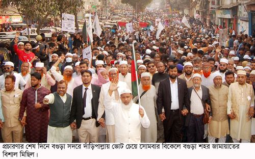 বগুড়া সদরে দাঁড়িপাল্লায় ভোট চেয়ে মিছিল করলো জামায়াত