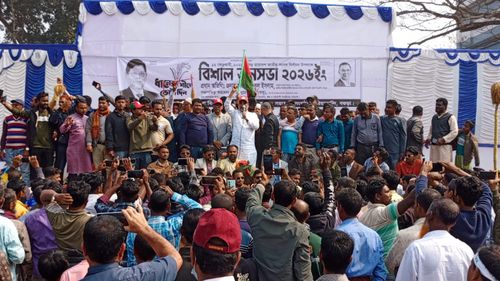 বগুড়া-১ (সারিয়াকান্দি-সোনাতলা) আসনের নির্বাচনী সমীকরণে নতুন মাত্রা যোগ করেছে বিএনপি। সোমবার সকালে সারিয়াকান্দি কলেজ মাঠে উপজেলা ও পৌর বিএনপি এবং এর সকল অঙ্গ-সহযোগী সংগঠনের আয়োজনে এক বিশাল জনসভা অনুষ্ঠিত হয়েছে। ধানের শীষের বিজয় নিশ্চিত করার লক্ষ্যে আয়োজিত এই সভায় নেতা-কর্মীদের ঢল নামে, যা এক পর্যায়ে জনসমুদ্রে পরিণত হয়।